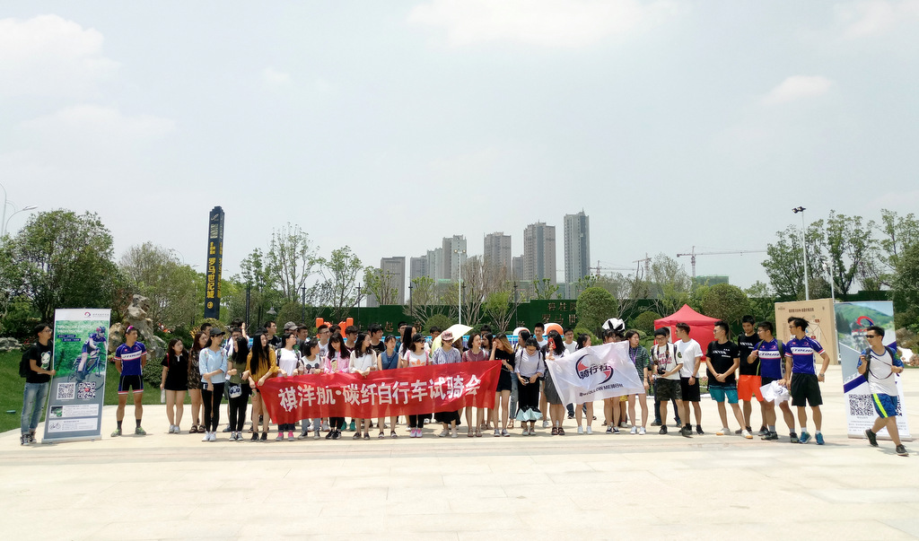 2017年6月17日,祺洋航在滁州碧桂園羅馬城舉辦了一場別開生面的試騎會。為了讓大學生熟悉騎行文化,了解最新的碳纖維自行車,祺洋航的小伙伴也是蠻拼的。聯系了一個大場地,安排了豐富的活動,有吃有玩,又可以體驗QTOUR碳纖維自行車。