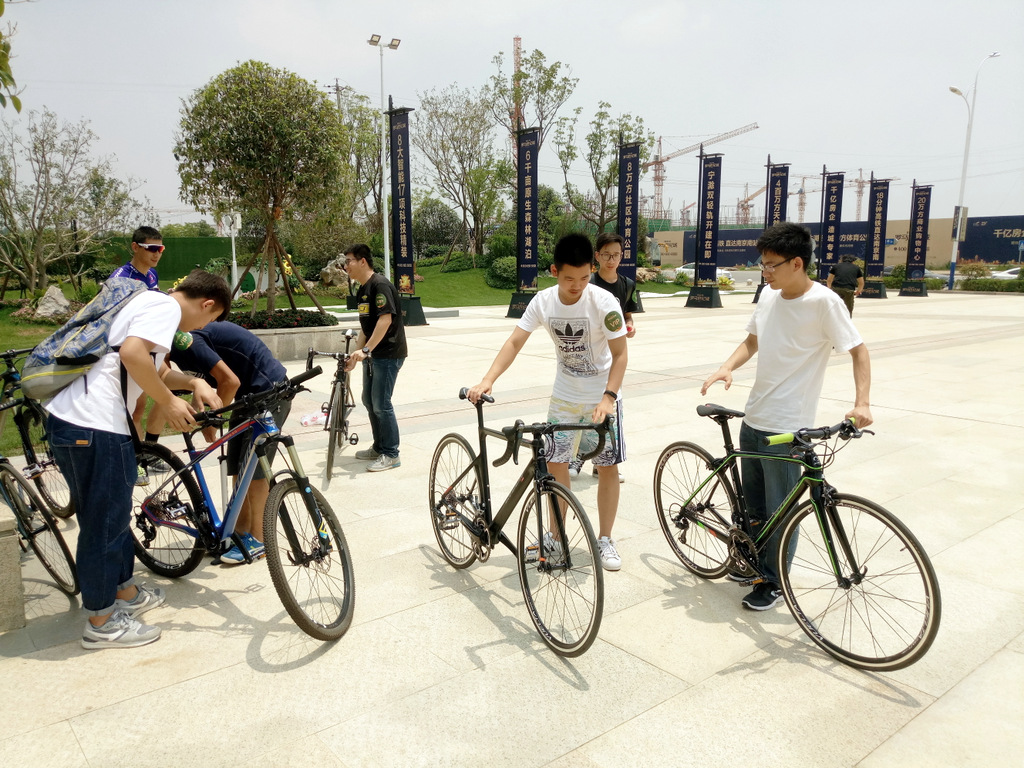 一大早,兩輛大巴將學生接到現場,這次活動以工業大學和審計大學為主,其中不乏對騎行很感興趣的同學,讓他們入坑(愛上騎行)是此行目的。