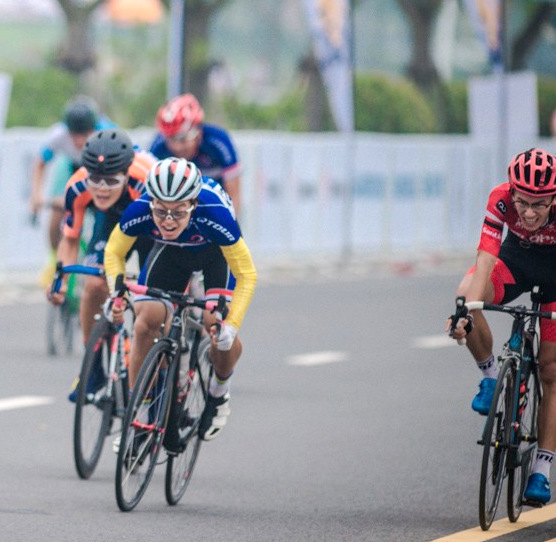 沖刺吧QTOUR,車隊主將葉聰在全力沖刺,QTOUR卷云氣動車架的高剛性將爆發的功率全部轉變成前進的速度。