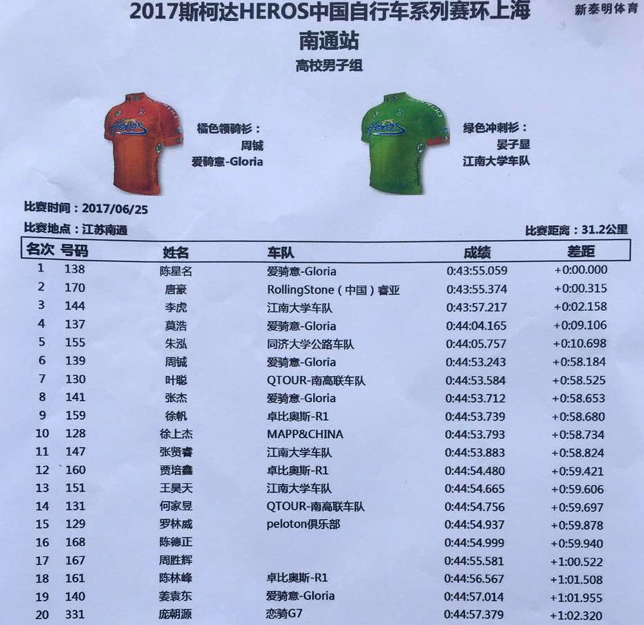 戰報,沖刺決勝,前十成績差都在1分之內,希望QTOUR車隊再接再厲,取得更好的成績。